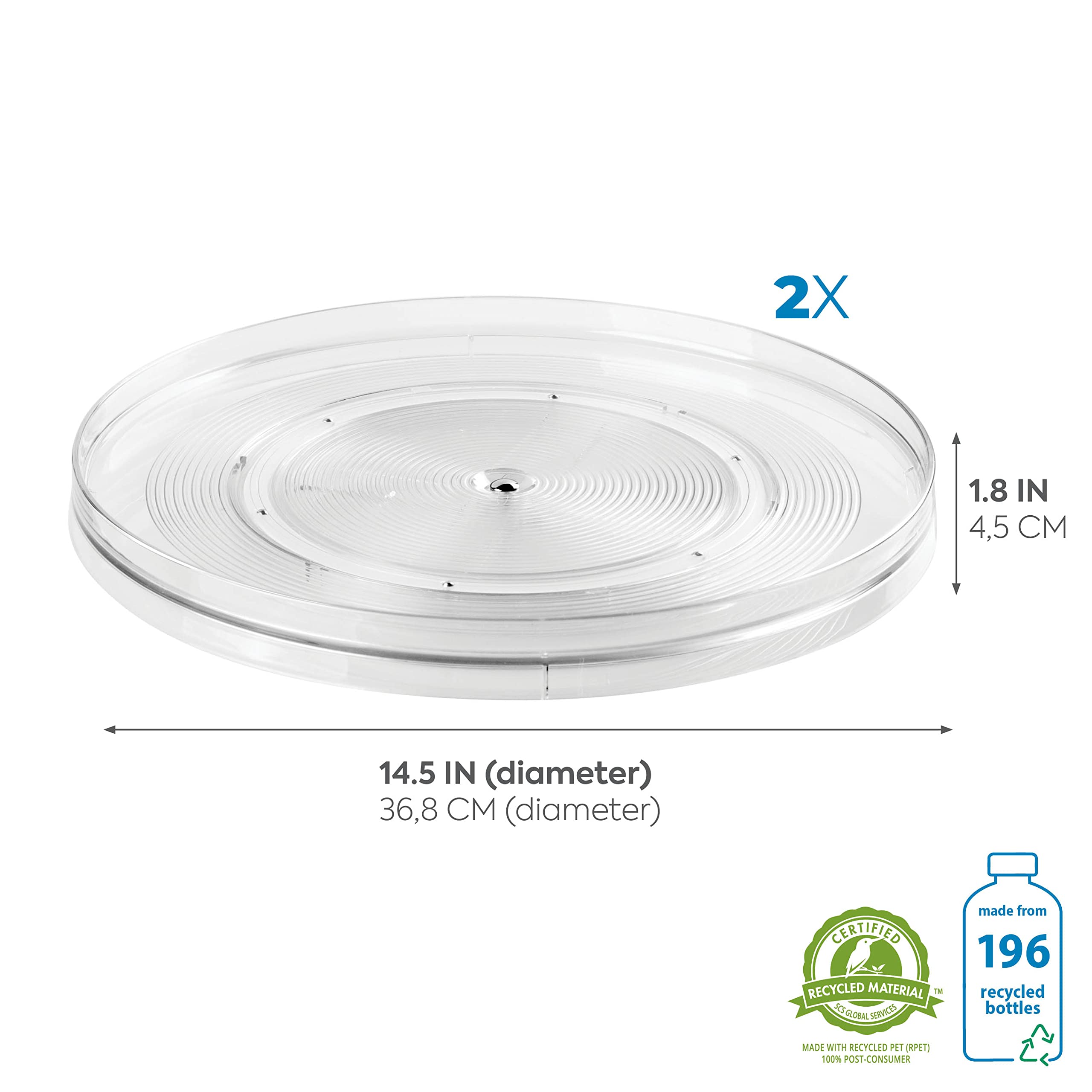 iDesign 14.5-Inch Lazy Susan Organizer - Large Lazy Susan Turntable for Cabinet or Pantry, 2-Pack, Clear