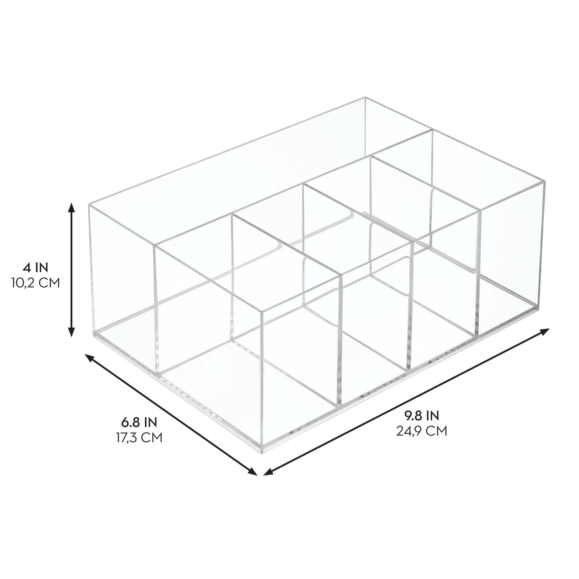 - DIVIDED ORGANIZER - The iDesign Clarity Organizer creates instant storage for your most frequented belongings; Four smaller sections and one larger section streamline everything from tools and brushes to face serums and cleansers, keeping items visible and easily accessible; Set of 2