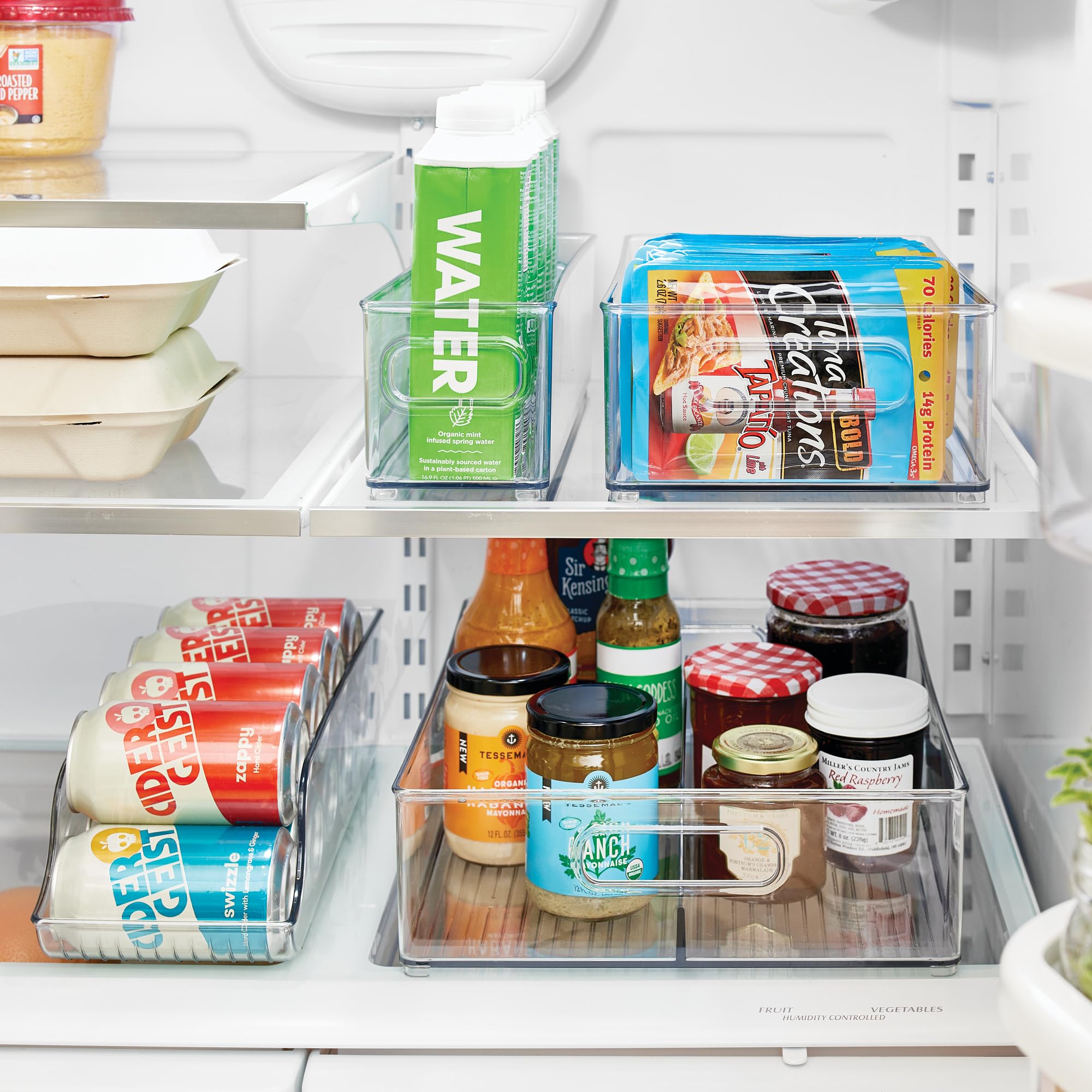 - MULTI-PURPOSE DESIGN – This set of versatile plastic bins can be used in or out of the fridge to organize single-serve pouches, packets, snacks, canned goods, and more. iDesign makes it easy to achieve complete kitchen, cabinet, and pantry organization.