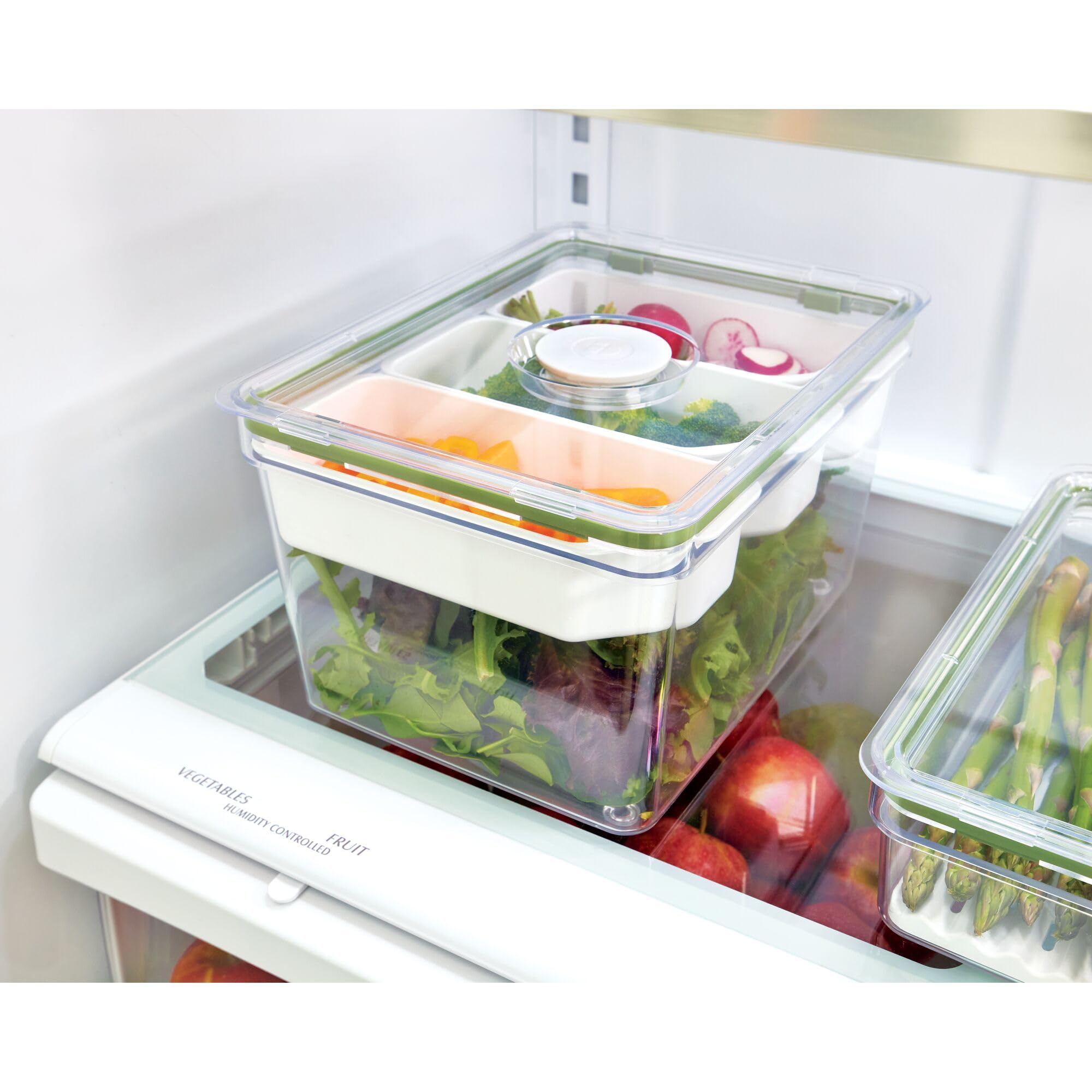 - 3 MOVABLE BIN DIVIDERS – Keep your produce fresh and separated with the dividers; perfect for storing food, craft supplies, cleaning supplies, and more; the removable dividers allow you to customize the size of each section in the bin to suit your needs