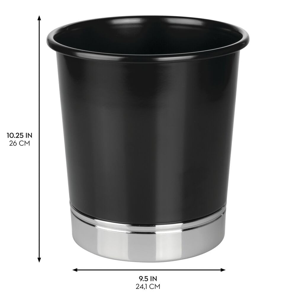 iDesign Small Round Bathroom Trash Can - Black/Chrome