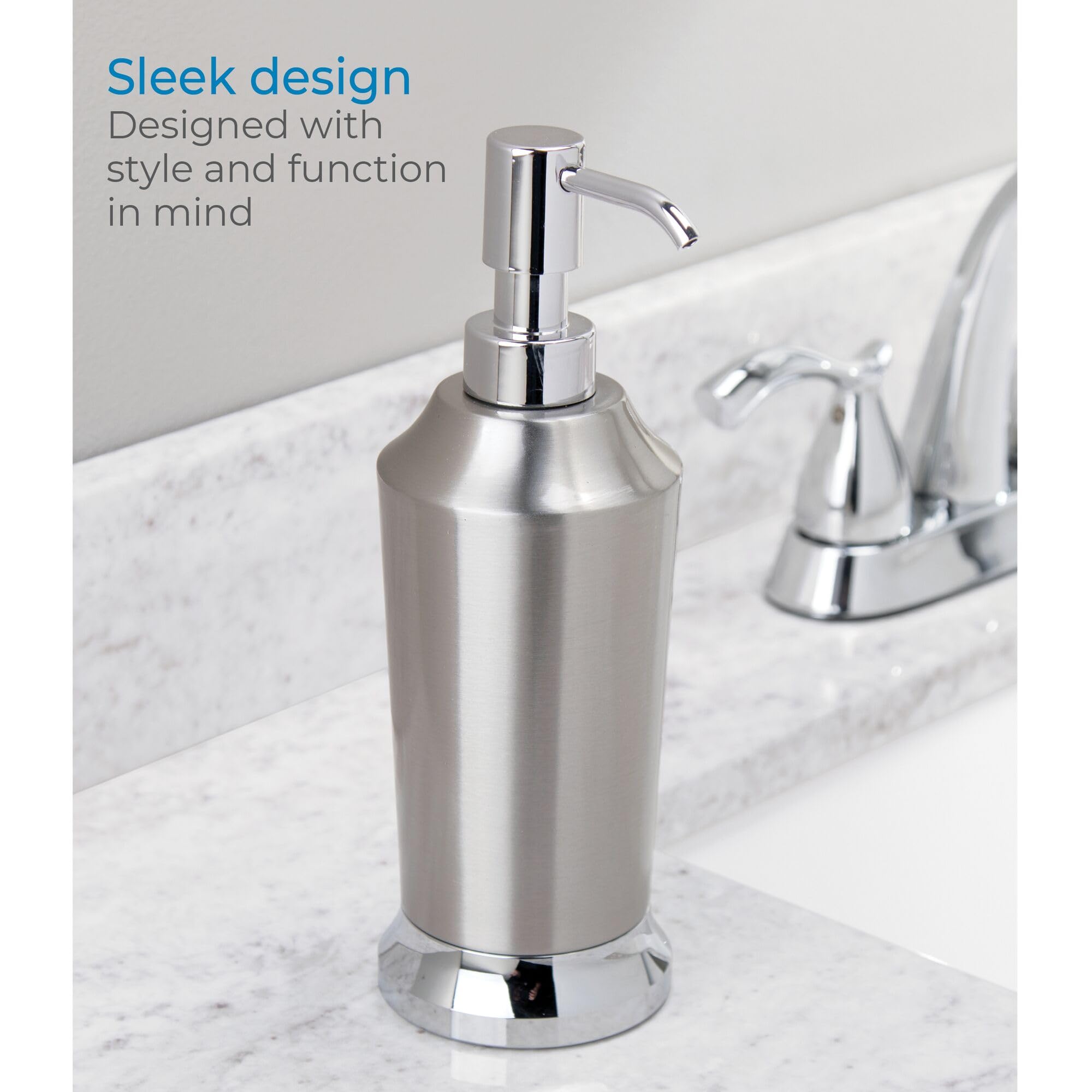 - DURABLE & STYLISH – Made of durable stainless steel, the bathroom soap dispenser pump stands up to everyday use; the brushed and chrome split finish matches any home décor