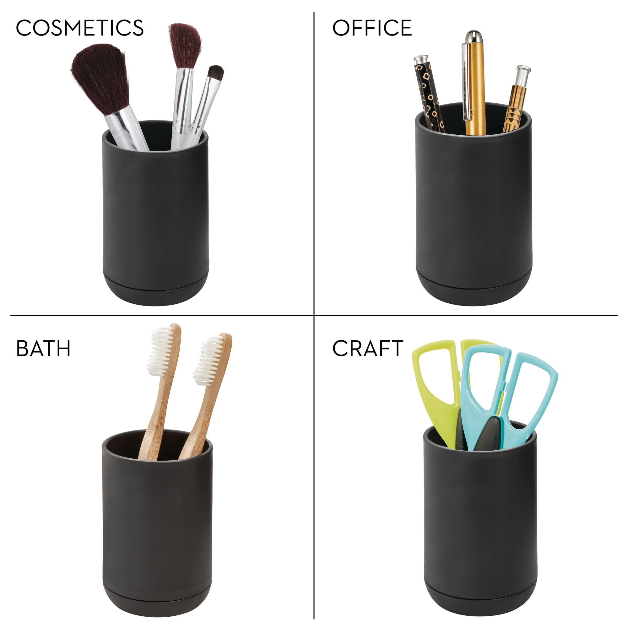iDesign Toothbrush Holder for Normal Toothbrushes, Spin Brushes, and Toothpaste, The Cade Collection - 3" x 3" x 4. 5", Matte Black