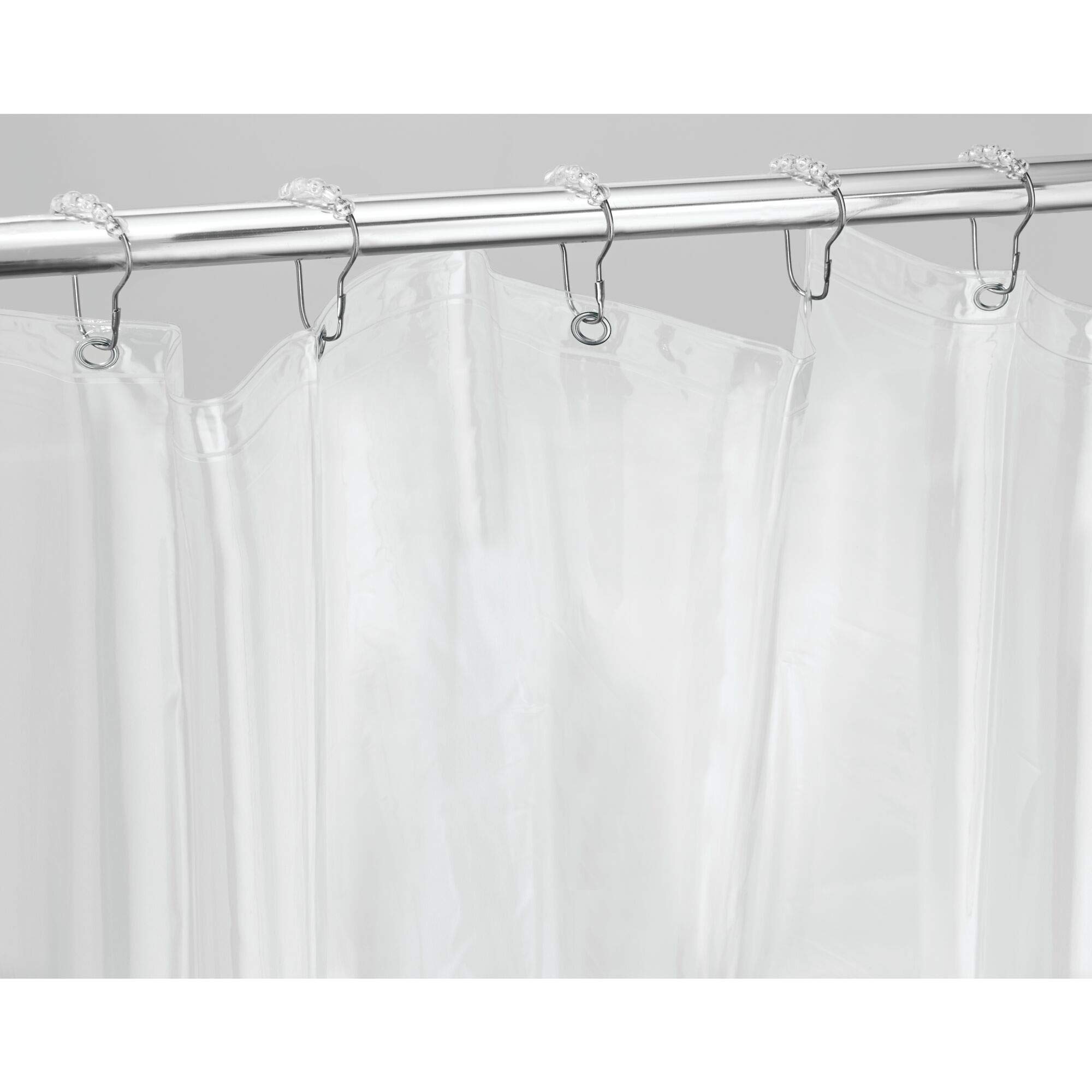 - VERSATILE – Use the clear shower curtain liner with any style of hooks or rings, including C-hooks, S-hooks, or roller rings; it is compatible with both straight and curved curtain rods