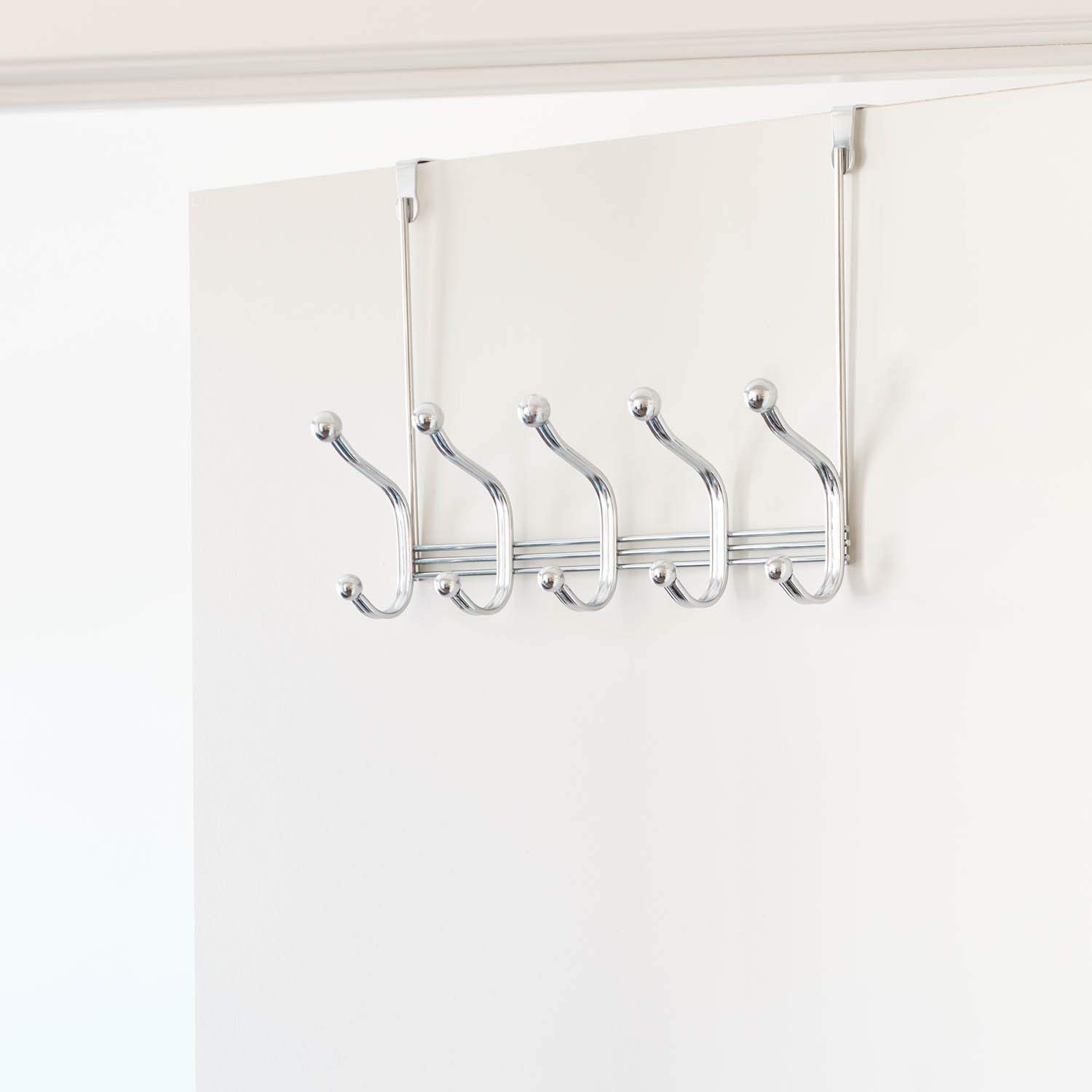 iDesign York Metal Over the Door Organizer, 5-Hook Rack for Coats, Hats, Robes, Towels, Jackets, Purses, Bedroom, Closet, and Bathroom, 15.28" x 5.25" x 11", Chrome—