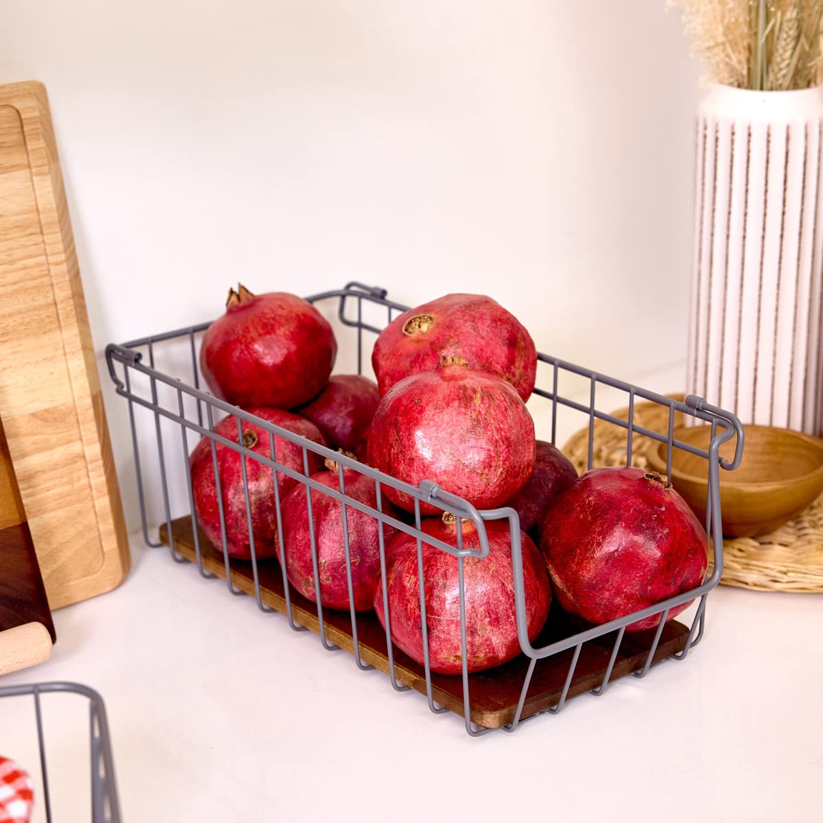 - KITCHEN STORAGE WIRE BASKET: A functional design with elevated aesthetic, this wire basket with acacia wood is ideal for storing food, utensils, and cooking tools.